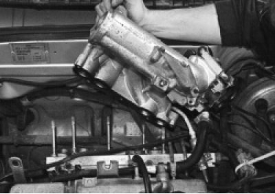 15. Отверните гайки крепления ресивера к впускному коллектору…