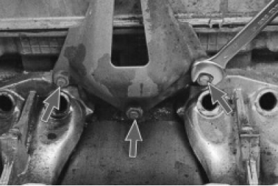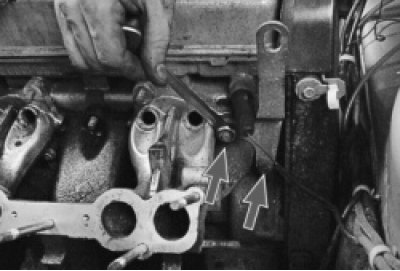 24. Отверните гайки и снимите впускной и выпускной коллекторы (см. «Головка блока цилиндров (ремонт)»).