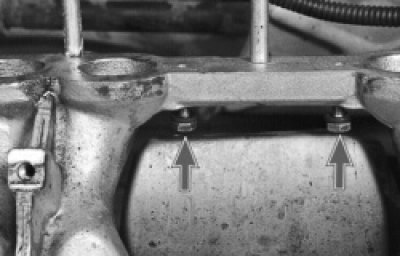 21. Выверните два винта крепления термоэкрана к впускному коллектору и снимите термоэкран.