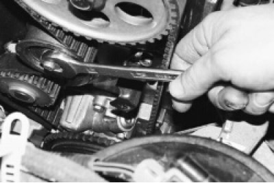 8. Отрегулируйте натяжение ремня привода распределительного вала и проверьте совпадение меток фаз газораспределения на шкивах распределительного и коленчатого валов (см. «Замена ремня привода распределительного вала и регулировка натяжения ремня»).