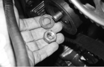 5. …и снимите шайбу, а затем и натяжной ролик со шпильки.