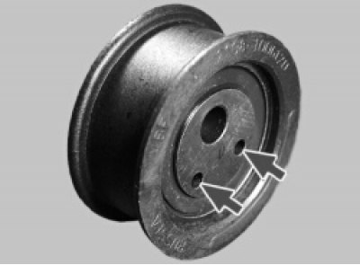 7. Установите новый натяжной ролик в порядке, обратном снятию. При этом отверстия под специальный ключ должны быть направлены наружу.