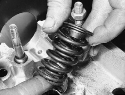 12. Выньте верхнюю тарелку пружин, внутреннюю и наружную пружины клапана.