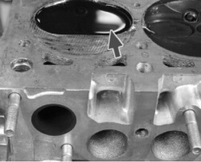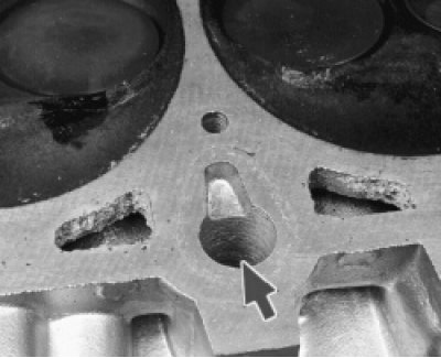 29. Промойте масляные каналы. Для этого заглушите вертикальный масляный канал со стороны камеры сгорания (канал находится между 3-м и 4-м цилиндрами)…