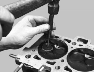 36. Подтолкнув клапаны снизу, выньте их из головки блока.