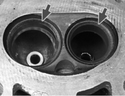 Незначительные повреждения (мелкие риски, царапины) можно удалить притиркой клапанов [см. «Притирка клапанов» в подразделе «Головка блока цилиндров (ремонт)»].