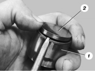 48. Осмотрите толкатели клапанов. Если на рабочей поверхности 1 толкателя есть задиры, царапины и пр., замените толкатели. На рабочих поверхностях регулировочных шайб 2 не должно быть задиров, забоин, царапин, следов ступенчатого или неравномерного износа металла. При таких дефектах шайбы надо заменить. На шайбах допускаются концентрические следы приработки с кулачками распределительного вала.