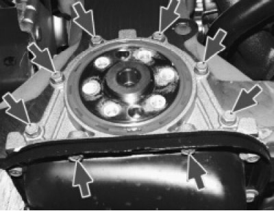 2. Снимите маховик (см. «Снятие и установка маховика»), предварительно пометив его расположение относительно коленчатого вала.
