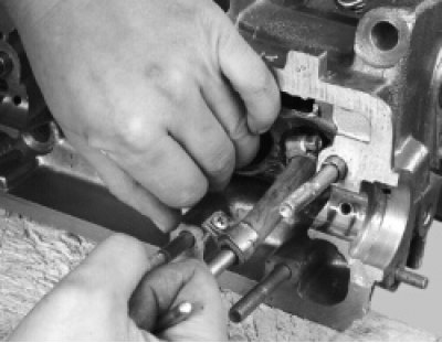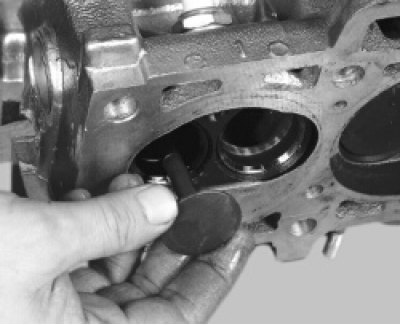 1. Снимите головку блока цилиндров (см. «Замена прокладки головки блока цилиндров» в подразделе «Замена деталей уплотнения двигателя»),