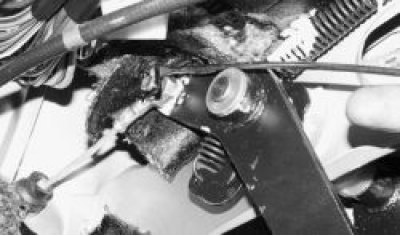 3. Отсоедините оттяжную пружину педали сцепления от кронштейна.