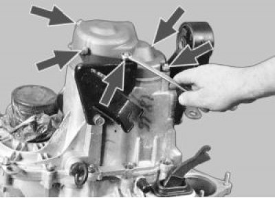1. Снимите коробку передач с автомобиля (см. «Снятие и установка коробки передач»). Очистите ее от грязи и вымойте снаружи.