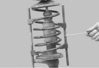 1. Снимите телескопическую стойку с автомобиля (см. «Снятие и установка передней стойки»).