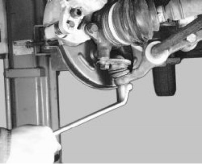 3. С помощью съемника выпрессуйте палец шарового шарнира из рычага.