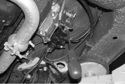 2. Если задние колеса вывешены, предварительно разблокируйте регулятор давления задних тормозных механизмов, вставив отвертку между пластиной и поршнем. Не забудьте вынуть ее после окончания работы.