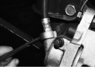 Будьте осторожны — из шланга потечет тормозная жидкость. Обратите внимание на то, что на штуцере установлено медное уплотнительное кольцо. Замените сильно обжатое кольцо.