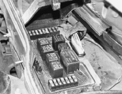 Блок реле и предохранителей установлен в подкапотном пространстве, в отсеке перед ветровым стеклом с левой стороны.