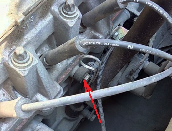 3. Датчик детонации 6 (см. рис. «Расположение в подкапотном пространстве элементов системы управления двигателем«) прикреплен к верхней части блока цилиндров. Он улавливает аномальные вибрации (детонационные удары) в двигателе.
