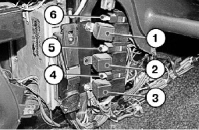 4. Для замены реле отверните две гайки крепления блока реле к кронштейну панели приборов…