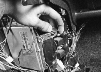 5. Отверните две гайки крепления контроллера и блока реле к кронштейну панели приборов…