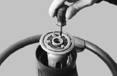 5. Выньте из основания контактного кольца штифт выключения указателей поворота вместе с пружиной…