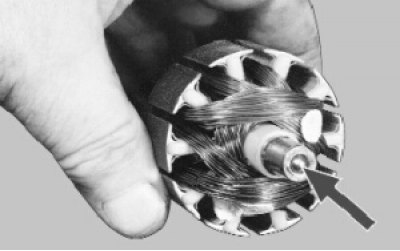 – проследите, чтобы при установке якоря в корпус в выемку вала был установлен упорный шарик;