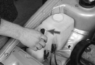 2. Отсоедините колодку с проводами от датчика уровня омывающей жидкости.