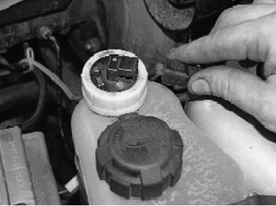 2. Отсоедините колодку жгута проводов от датчика уровня охлаждающей жидкости.